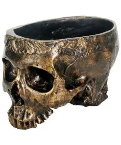 - Goldener Gothic Blumentopf im Schädel Design