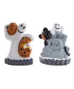 Kinder lieben Halloween, weil sie einen Haufen Süßigkeiten sammeln und sich gruselig kostümieren dürfen. Mit der passenden Halloween Deko wird das Fest aber erst so richtig stimmungsvoll. Hierbei sollte die Dekoration jedoch nicht allzu unheimlich sein. Diese kinderfreundliche Halloween Deko ist ideal geeignet. Als Halloween Kerze mit Geist zeigt die Tischdeko ein lustiges Gespenst. Du bekommst die Geister Dekokerze in zwei unterschiedlichen Ausführungen. Einmal als Gespenst mit Kürbis und einmal als Gespenst mit Grabstein. Die Figuren lächeln dir freundlich entgegen und bringen Spaß an jeden Tisch!