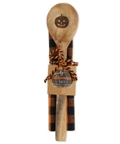 Lieferumfang: 1 x Kürbis Motiv Holzlöffel & Geschirrtuch Set