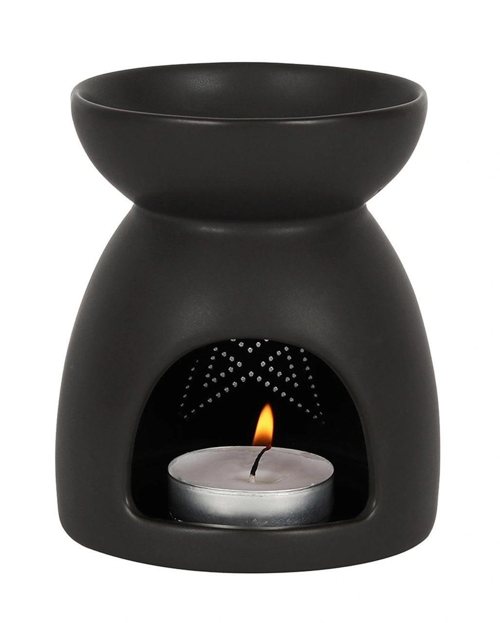 - schwarzer Keramik-Ölbrenner mit ausgestanztem Pentagramm-Design