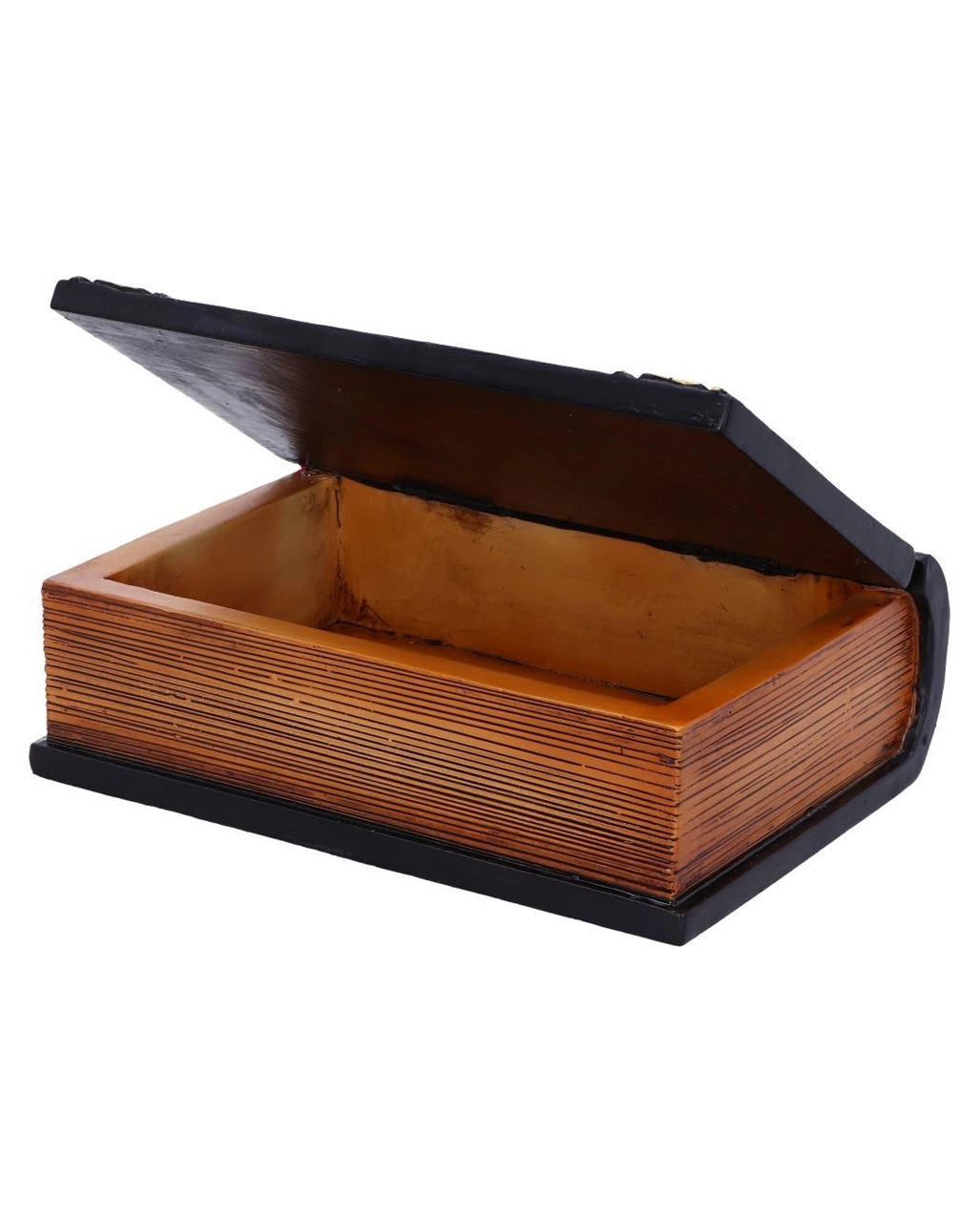 Unsere schwarzes Buch Magischer Sprüche Schmuckschatulle ist ein herrliches Stück extravaganter Deko Kunst. Die Aufbewahrungsbox hat einen magischen Auftrag. Sie bringt mystisches Flair in deine Hexenbude. Sieht sie doch aus aus wie ein kostbares antikes Buch, in dem einige Zaubersprüche stehen. Gleichzeitig aber ist sie eine elegante Schatulle, in der du deine Geheimnisse, deinen Schmuck oder eben auch Zaubersprüche aufbewahren kannst.